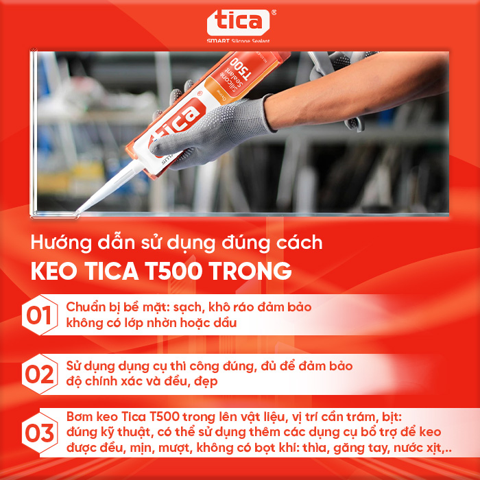 Keo Tica T500 trong là một sản phẩm dễ sử dụng và ứng dụng rộng rãi trong nhiều lĩnh vực. Để đạt được hiệu quả tối ưu khi sử dụng sản phẩm này, hãy tham khảo các bước hướng dẫn sau: