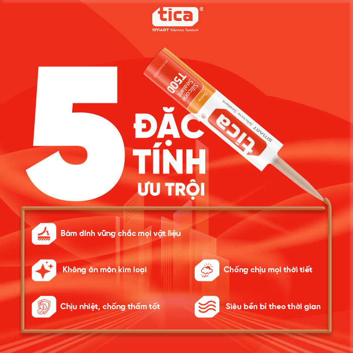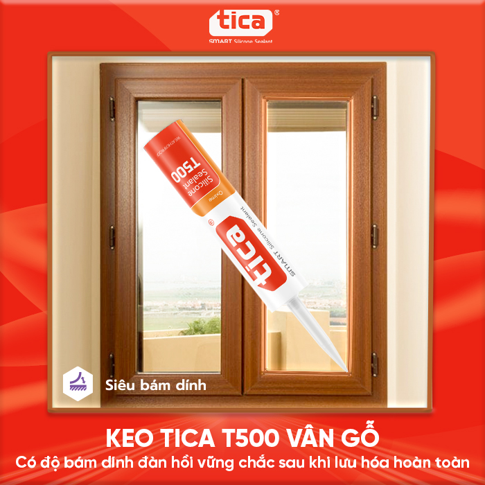 Keo Tica T500 vân gỗ là dòng keo silicone gốc Oxime (gốc trung tính), với các đặc tính ưu trội: Bám dính vững chắc, không bị sụt lún; Bền bỉ theo thời gian, chống chịu mọi thời tiết; Chống thấm tốt, không ăn mòn kim loại; Chịu nhiệt tốt; Dễ sử dụng; Chuyên dùng bịt, trám kín hiệu quả cho hầu hết các vật liệu.